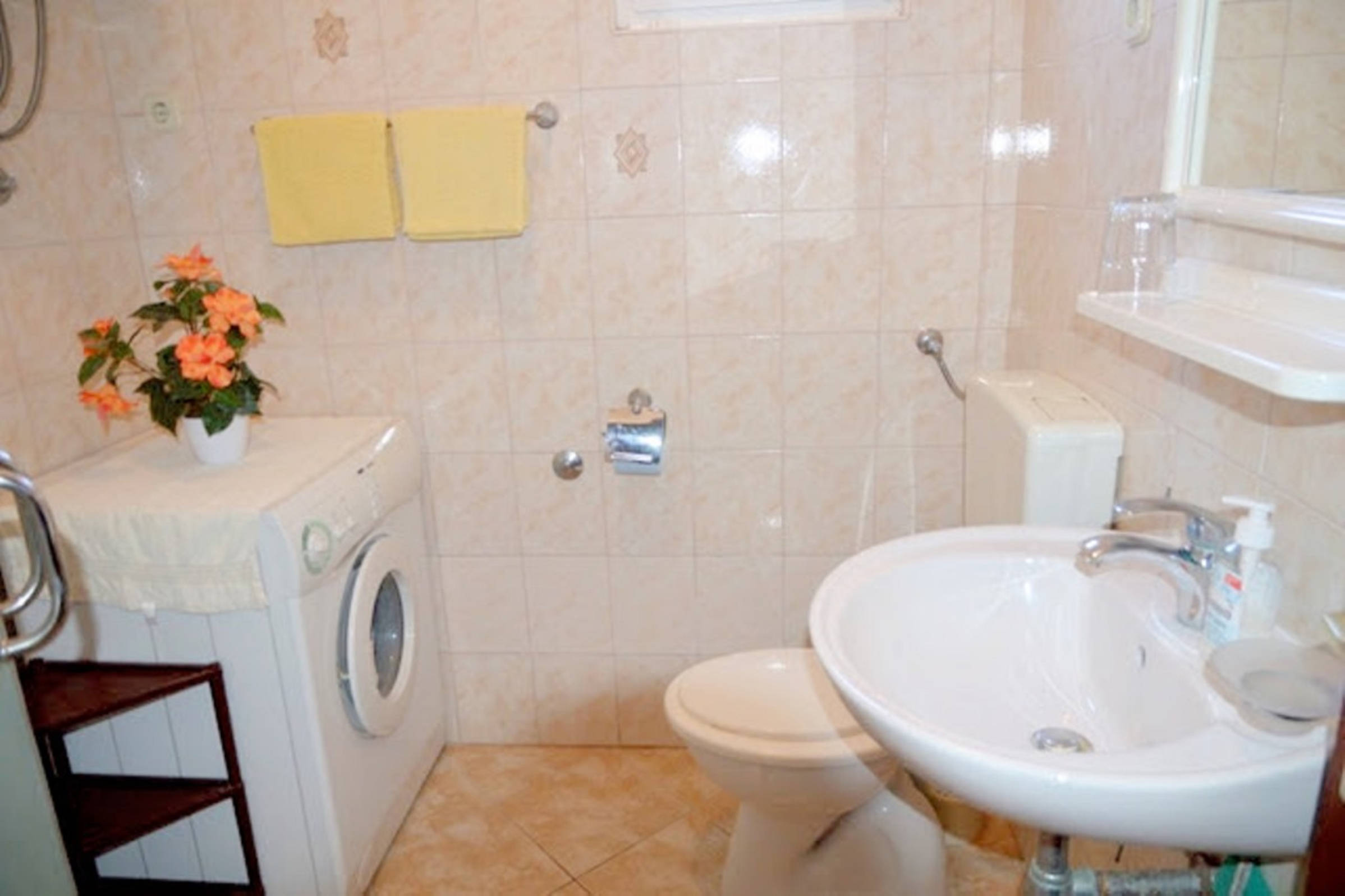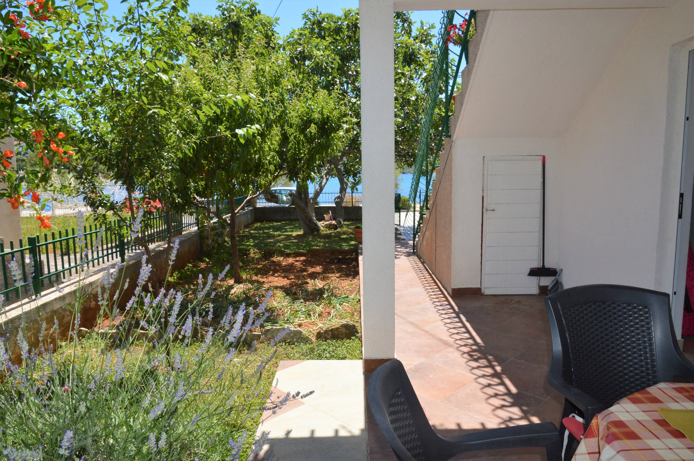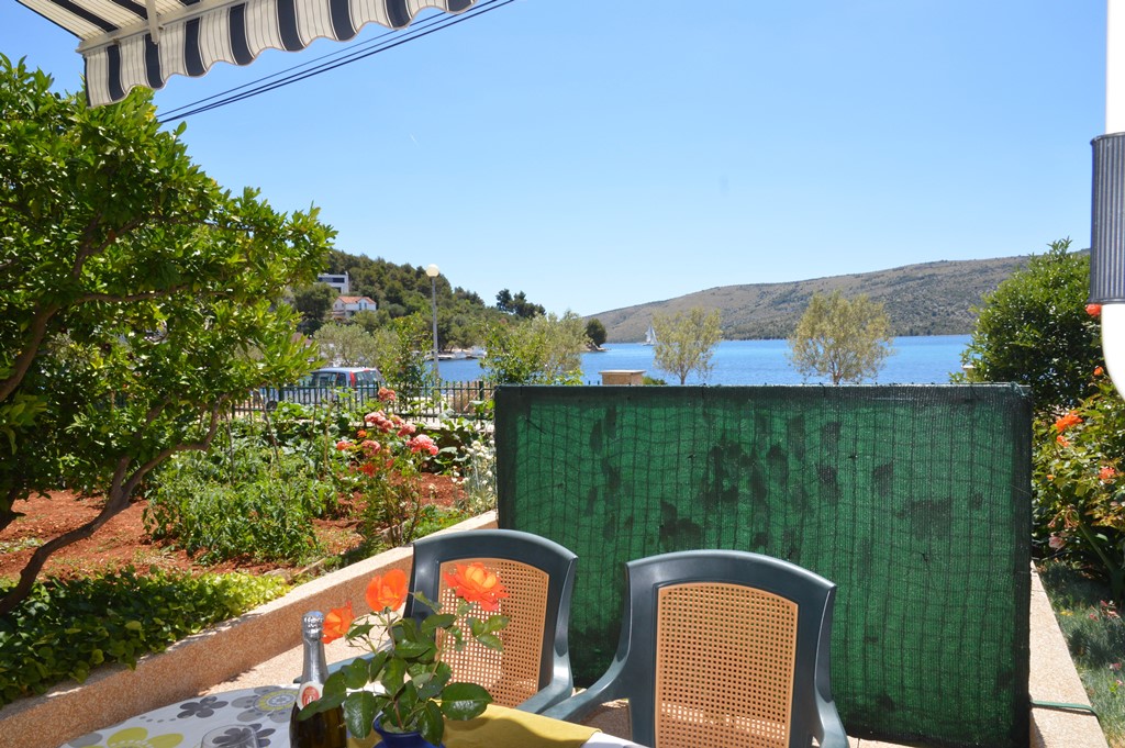This 2 bedroom apartment is situated in place Poljica near Trogir in the first row from nice pebble beach with shallow sea . It has capacity 4 + 1 persons . There is only this apartment so other guests won’t bother you . It consists of kitchen with living room and dining room , 1 full bathroom (shower, hair dryer, washing machine), 2 bedrooms with double beds and spacious decked terrace.
