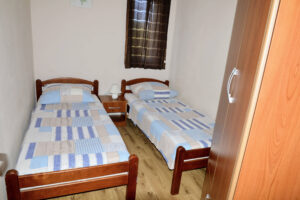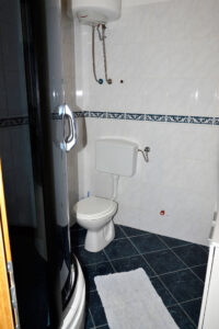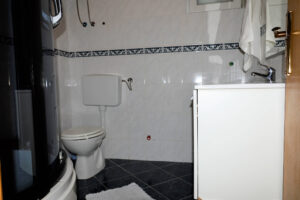 The house is situated in beautiful bay of Vinišće, 10 km from the Marina and 20 km from Trogir. It’s only 150 m from the pebble beach. In quiet street in vicinity of all services. Maximum capacity of the 3 apartment units is 12+2 persons. There is 3 bedroom apartment (4+2) on the ground floor , 2 bedroom apartment (3+2) on the first floor and 1 bedroom apartment (2+1) on the first floor . There is parking in front of the house and BBQ area behind the house. If you have a pet you can bring it with you( extra paid) . 3 bedrooms – double and twin beds, bathroom+wc, kitchen with dinning room (sofa bed for 1 child eventually) with exit to the balcony with a view to sreet and garden .