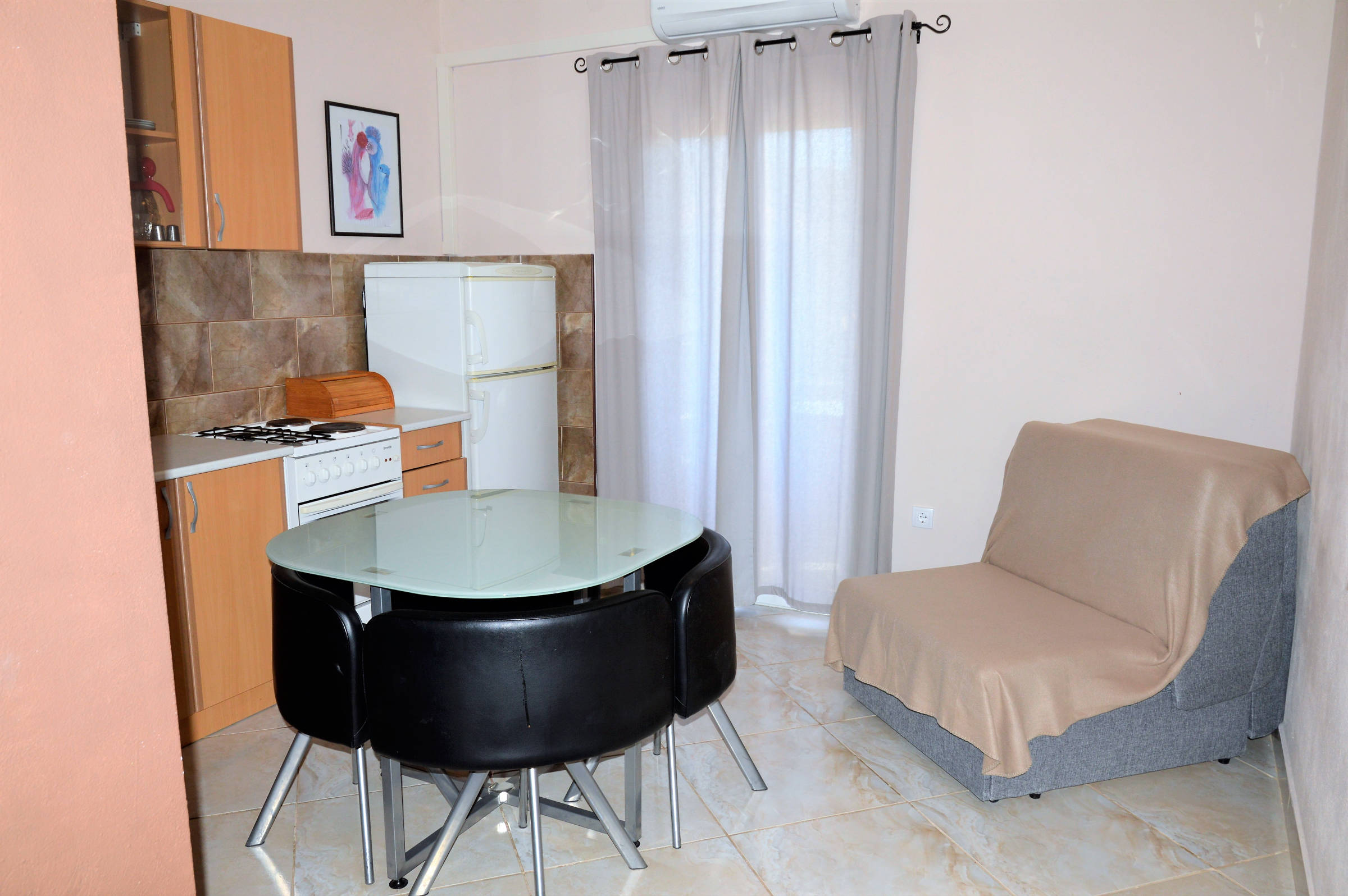 2+1 persons, 1 bedroom, 1 bathroom , kitchen with dining area -exit on the balcony