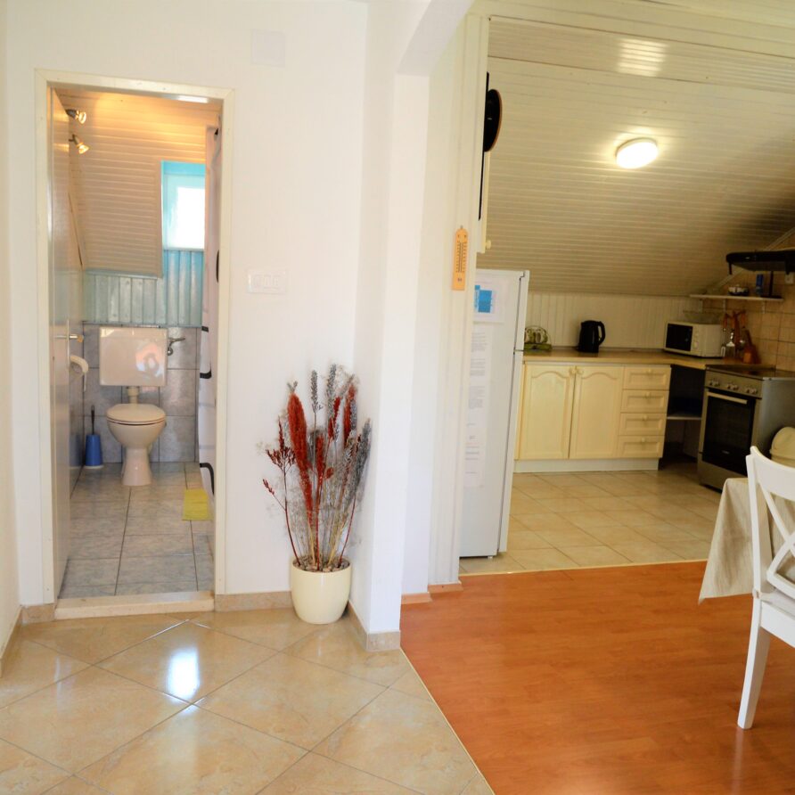 This 2 bedroom apartment is situated in place Poljica near Trogir in the first row from nice pebble beach with shallow sea . It has capacity 4 + 1 persons . There is only this apartment so other guests won’t bother you .It consists of kitchen with living room and dining room , 1 full […]