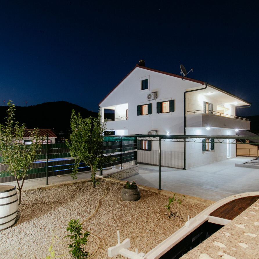 The house is situated in beautiful bay of Vinišće, 10 km from the Marina and 20 km from Trogir. It’s only 150 m from the pebble beach. In quiet street in vicinity of all services. Maximum capacity of the 3 apartment units is 12+2 persons. There is 3 bedroom apartment (4+2) on the ground floor […]