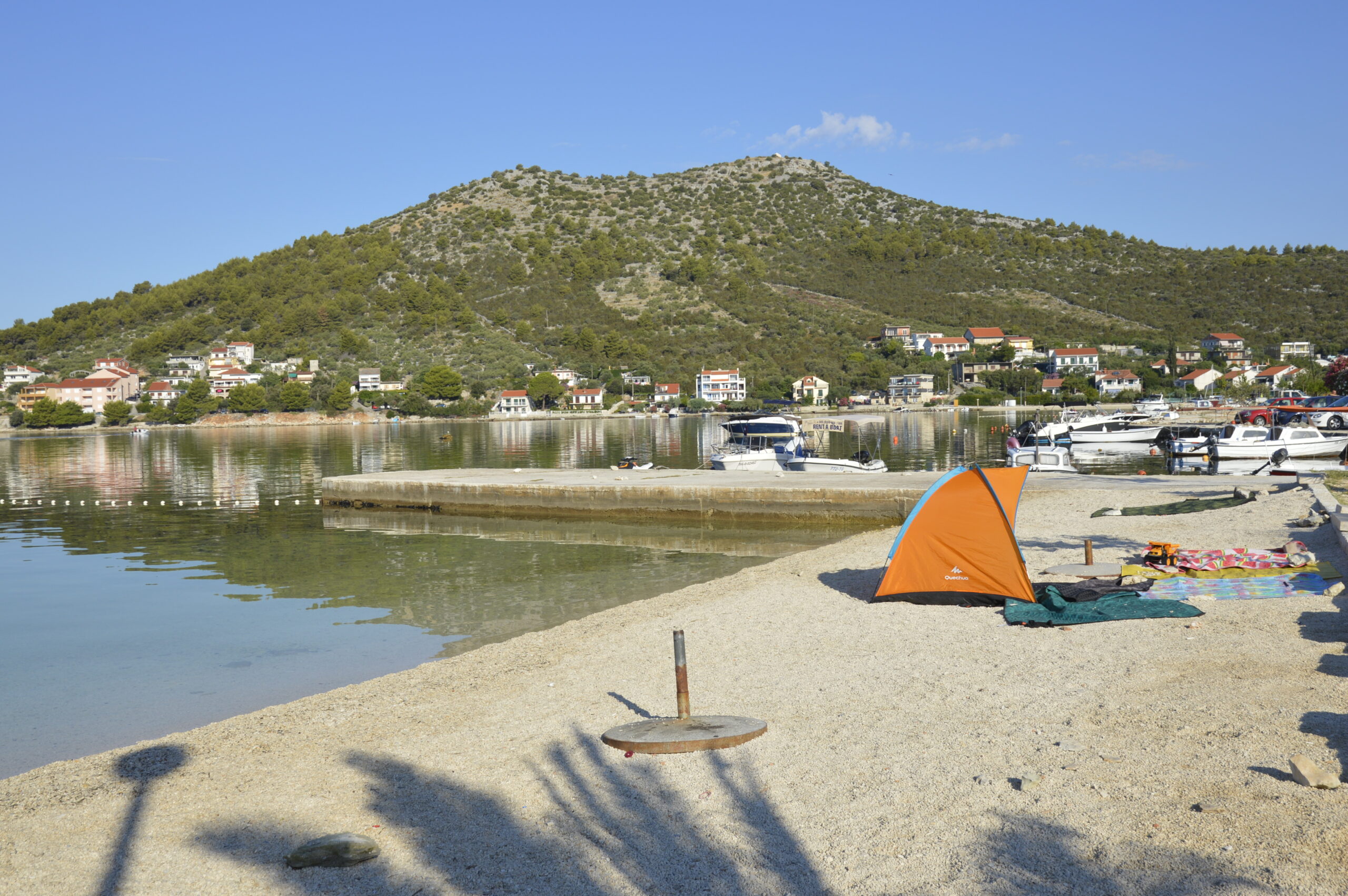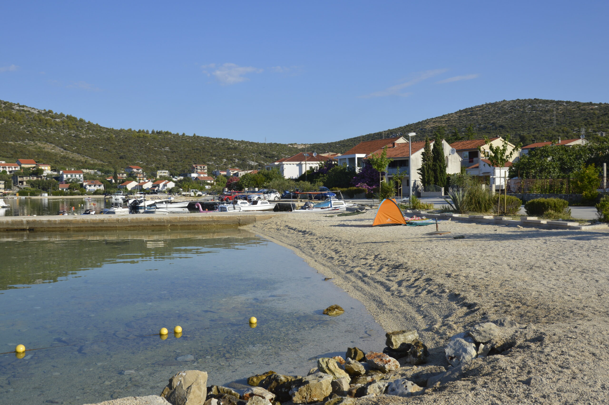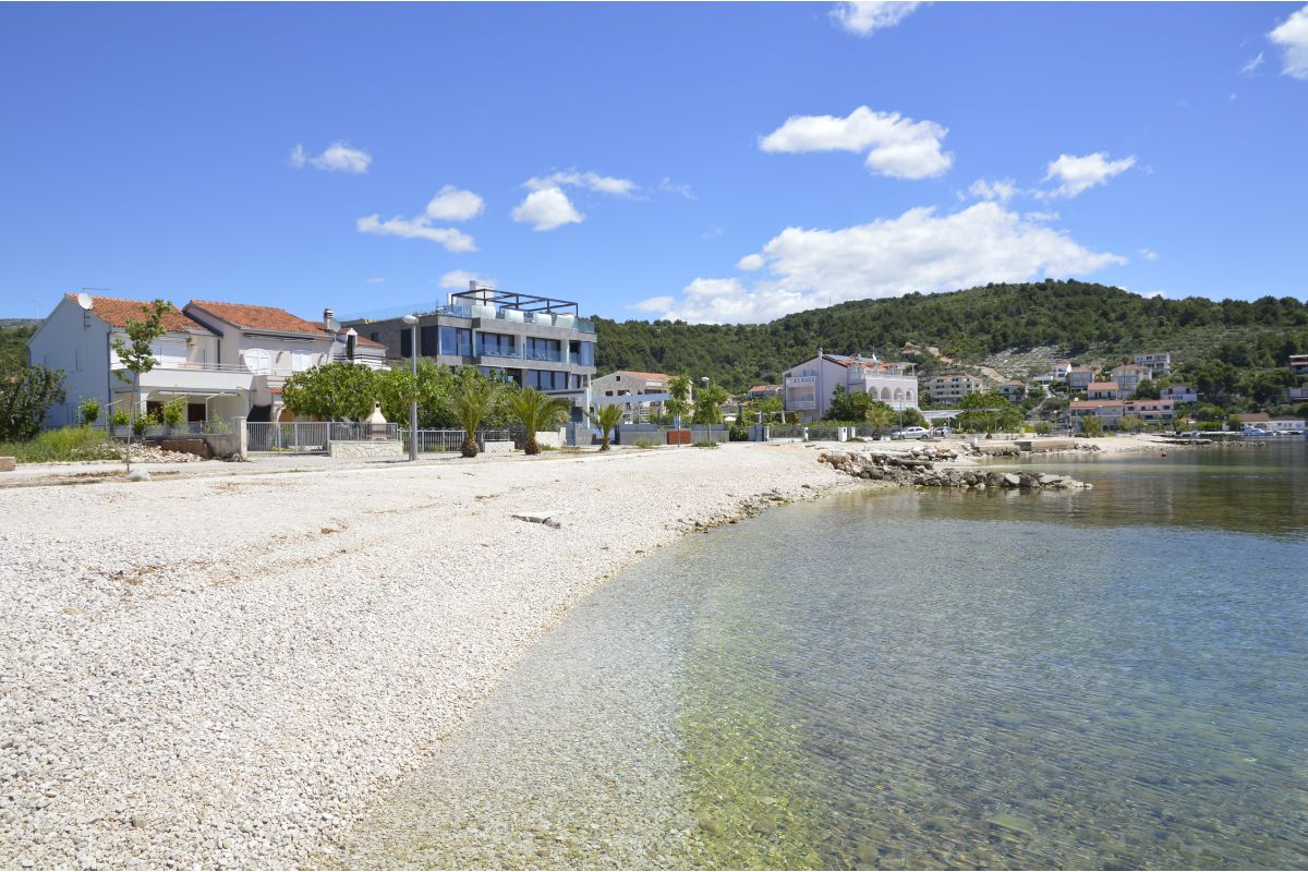 Poljica are small turist place ideal for family vacation, new tourist destination just 3 km from Marina and 9 km from Trogir. It has nice pebble beaches with shallow waters all along the 2 km long coast and hidden rock nature beaches with pine shades so you’re surely find your perfect place under the sun even in high season. There are basic services like restaurant , coffe bar and small shop but you can always wisit Marina or Trogir if you need something special. It’s well connected with all major dalmatian towns and attractions. So if you really want to rest with your kids and in same time be close to hustle and bustle then Poljica might be your ideal summer destination.